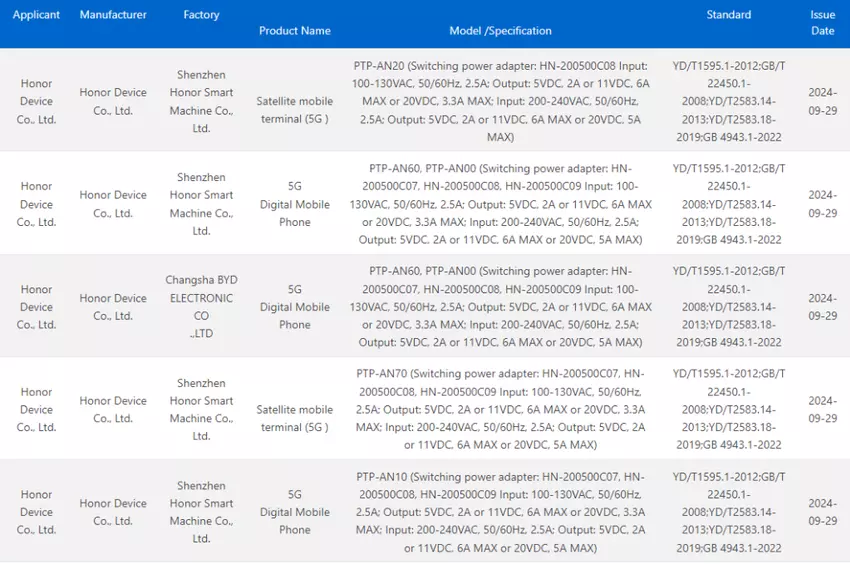 Den Angaben zufolge haben fünf Modelle, darunter das PTP-AN20, PTP-AN60, PTP-AN00, PTP-AN70 und PTP-AN10, die 3C-Zertifizierung erhalten. Die Modelle AN20 und AN70 unterstützen die Satellitenkonnektivität. Bei den anderen drei Modellen handelt es sich wahrscheinlich um Magic 7, Magic 7 Pro und Magic 7 Ultimate. Es besteht auch die Möglichkeit, dass es sich bei PTP-AN20 und PTP-AN60 um die Versionen Magic 7 Pro und Magic 7 RSR Porsche Design handelt.