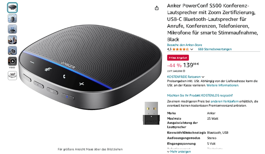 Greifen Sie jetzt zu: Anker PowerConf S500 zum Sensationspreis auf Amazon.de