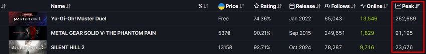 Für Konami ist dies das dritte Ergebnis in der Geschichte des Unternehmens. Nur METAL GEAR SOLID V: THE PHANTOM PAIN (91 Tausend) und Yu-Gi-Oh! Master Duel (262 Tausend).