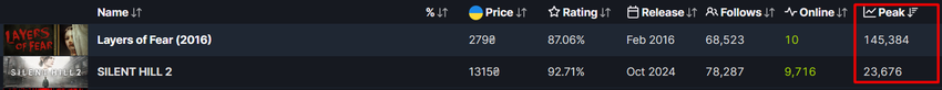 Wir haben geschrieben, dass das Remake von Silent Hill 2 am Tag seiner Veröffentlichung mehr als 23 Tausend gleichzeitige Spieler auf Steam hatte. Wie ist diese Zahl im Vergleich zu anderen Spielen von Konami und Bloober Team?