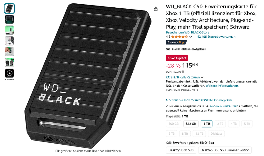 Mit ihrer beeindruckenden Leistung, der einfachen Installation und dem attraktiven Preisnachlass ist die WD BLACK C50 Xbox-Erweiterungskarte ein Muss für jeden ernsthaften Xbox-Spieler. Nutzen Sie diese Gelegenheit, um Ihr Gaming-Erlebnis zu revolutionieren – greifen Sie zu, solange das Angebot gilt!
