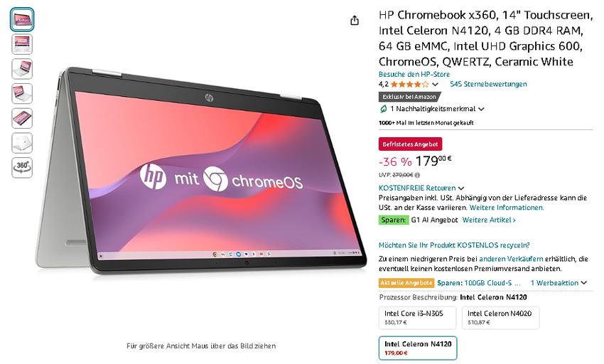Sichern Sie sich jetzt das HP Chromebook x360 zum Schnäppchenpreis auf Amazon.de