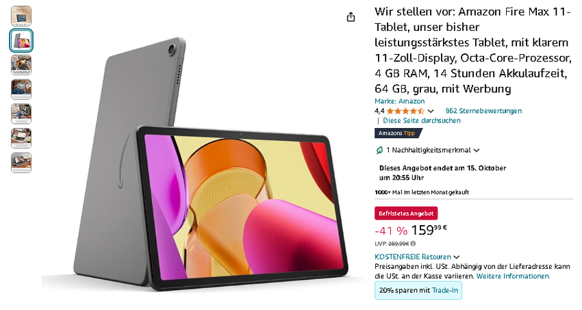 Sichern Sie sich das Amazon Fire Max 11 zu einem unschlagbaren Preis auf Amazon.de