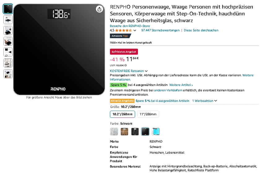 Sichern Sie sich die RENPHO Waage zum Bestpreis auf Amazon.de