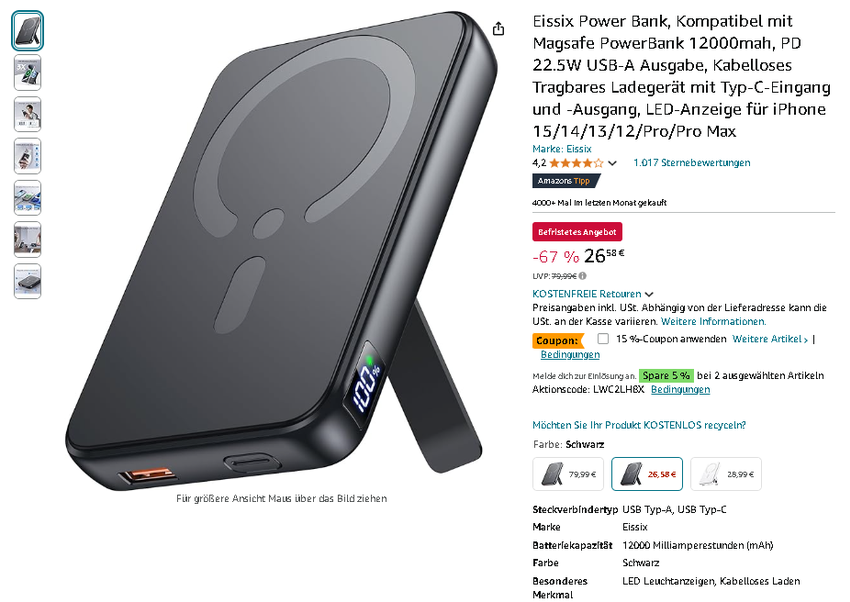 Mit ihrer Kombination aus Vielseitigkeit, Leistung und durchdachten Details setzt diese Powerbank neue Maßstäbe in der mobilen Stromversorgung. Der drastische Preisabfall macht sie zum Must-have für alle, die unterwegs nie ohne Energie sein wollen.