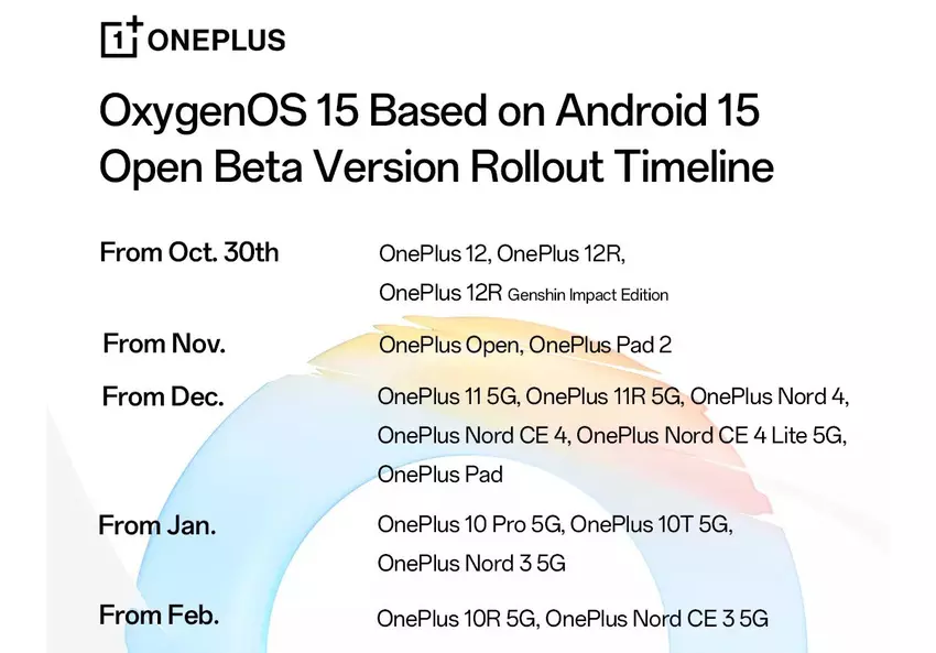 Am 30. Oktober wird auch das OnePlus 12R das Update erhalten, einschließlich der Genshin Impact Edition. Bereits im November wird die Beta für OnePlus Open und OnePlus Pad 2 verfügbar sein und im Dezember für OnePlus 11, OnePlus 11R, OnePlus Nord 4, OnePlus Nord CE 4, OnePlus Nord CE 4 Lite und OnePlus Pad. OnePlus 10 Pro, OnePlus 10T und OnePlus Nord 3 werden das Update im Januar erhalten, während OnePlus 10R und OnePlus Nord CE 3 das Update im Februar erhalten werden.