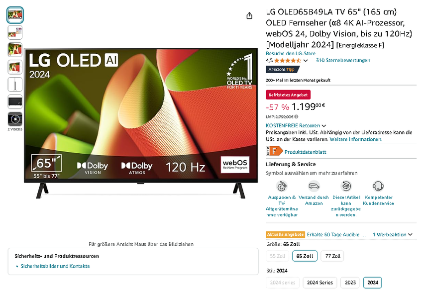 Sichern Sie sich den LG OLED TV zu einem spektakulären Preis auf Amazon.de