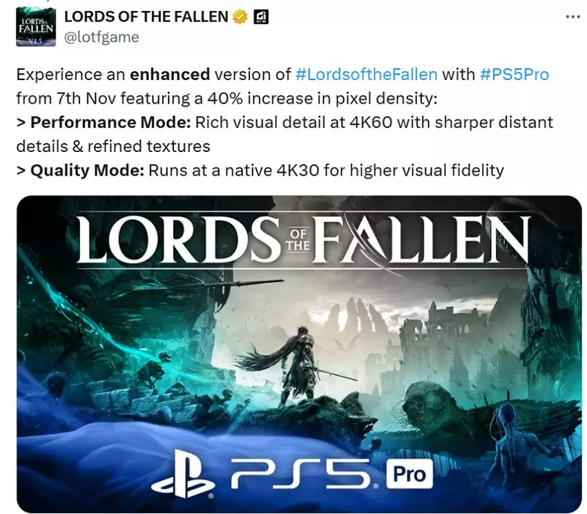 Der entsprechende Patch für Lords of the Fallen wird am Starttag der PS5 Pro - dem 7. November - veröffentlicht.