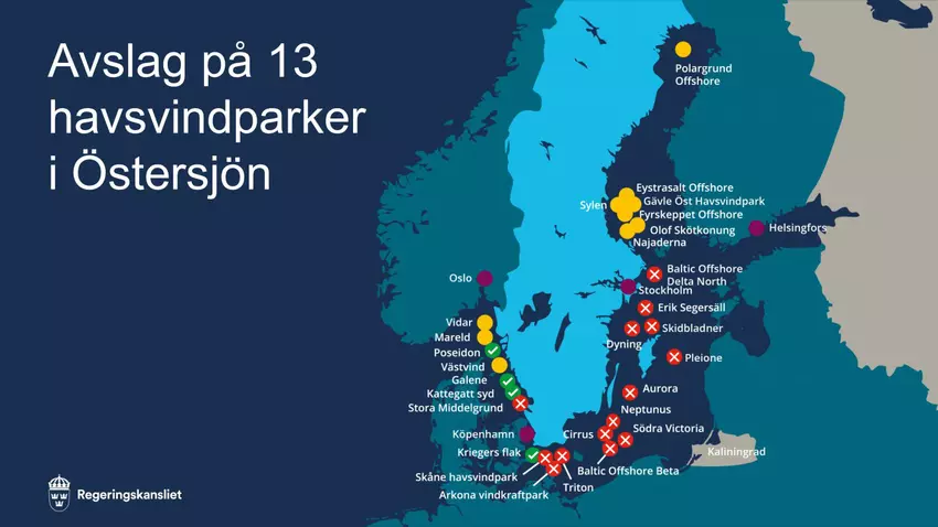 Die schwedische Regierung hat den Bau von 13 Windparks in der Ostsee wegen der von Russland ausgehenden Bedrohung der nationalen Sicherheit nicht genehmigt.