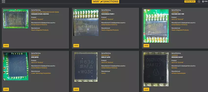 Auf der Website War&Sanctions veröffentlichten die Experten eine detaillierte Liste der im Ausland hergestellten Komponenten, die für die Herstellung der C-70 verwendet wurden. Sie fanden insbesondere Teile, die von Analog Devices, Texas Instruments und Xilinx-AMD (USA), Infineon Technologies (Deutschland) und STMicroelectronics (Schweiz) hergestellt wurden.
