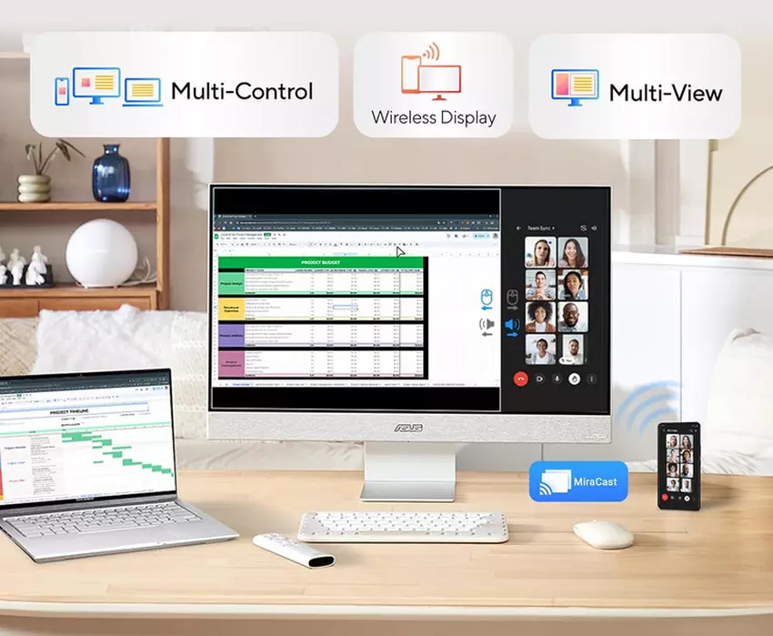 Als Entertainment-Center verfügt der ZenScreen Smart MS27UC über Google TV, zwei anpassbare 5W Harman Kardon-Lautsprecher sowie Bluetooth 5.2 und Wi-Fi. Außerdem ist es möglich, Inhalte über Chromecast und Miracast zu streamen.