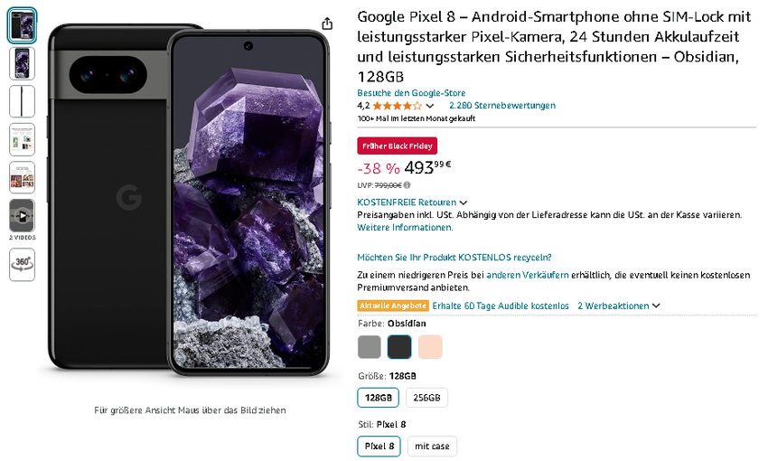 Sichern Sie sich das Google Pixel 8 zum Bestpreis auf Amazon.de