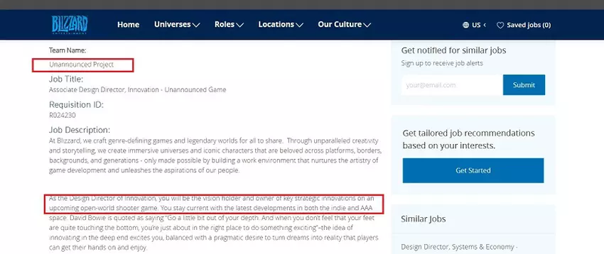 Auf der Website von Blizzard Entertainment ist eine Stelle als Deputy Design Director of Innovation für den unangekündigten Open-World-Shooter ausgeschrieben.