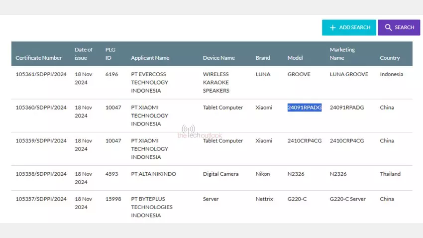 Die Geräte wurden auf der SDPPI-Zertifizierungswebseite in Indonesien gesichtet, was auf eine bevorstehende Veröffentlichung in Südostasien hindeutet. Die Zertifizierung enthält zwei Modellnummern, "2410CRP4CG" und "24091RPADG", die wahrscheinlich den globalen Versionen des Pad 7 und Pad 7 Pro entsprechen.