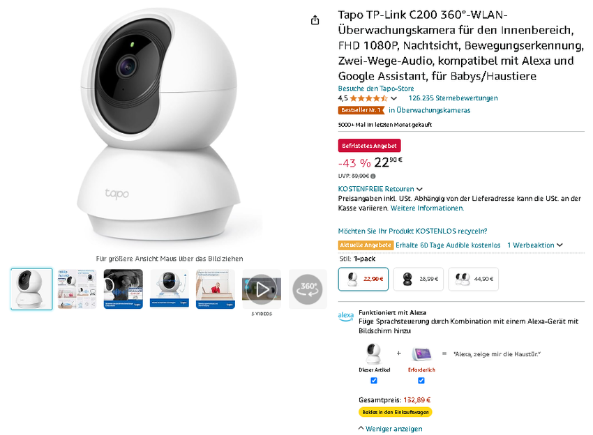 Mit ihrer hochwertigen Ausstattung, den vielseitigen Funktionen und dem aktuellen Aktionspreis ist die Tapo C200 eine überzeugende Wahl für alle, die eine flexible und erschwingliche Überwachungslösung suchen.
