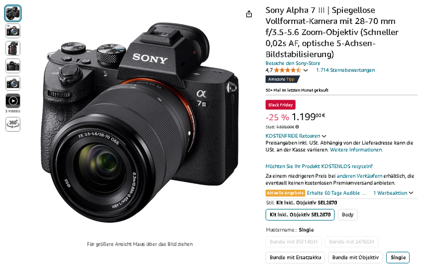 Sichern Sie sich die Sony Alpha 7 III zum Aktionspreis auf Amazon.de