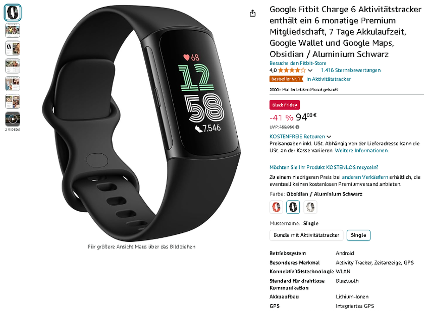 Mit seiner Kombination aus fortschrittlicher Technologie, umfassenden Gesundheitsfunktionen und dem aktuell reduzierten Preis ist der Fitbit Charge 6 eine lohnende Investition in die eigene Gesundheit. Diese zeitlich begrenzte Preisreduktion macht den Einstieg in die Welt des modernen Fitness-Trackings besonders attraktiv.