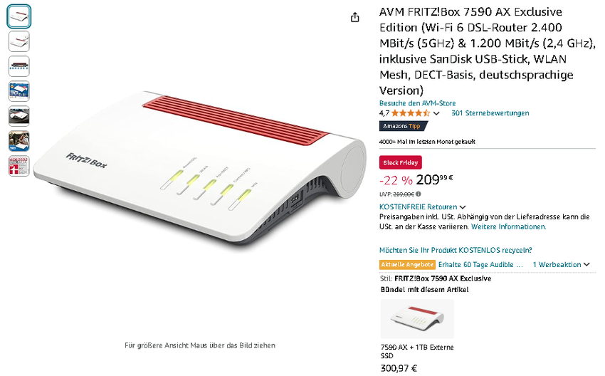 AVM FRITZ!Box 7590 AX Exclusive Edition mit USB-Stick – Jetzt 59€ sparen!