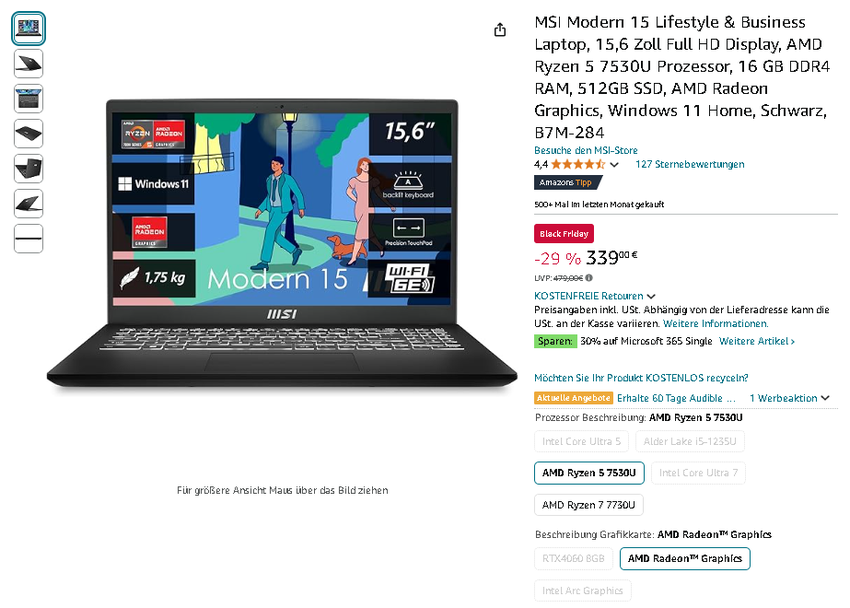 Sichern Sie sich den MSI Modern 15 zu einem verlockenden Preis auf Amazon.de