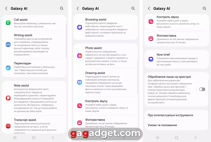 Galaxy AI-Einstellungen in Galaxy S25-Smartphones. Screenshots: gagadget