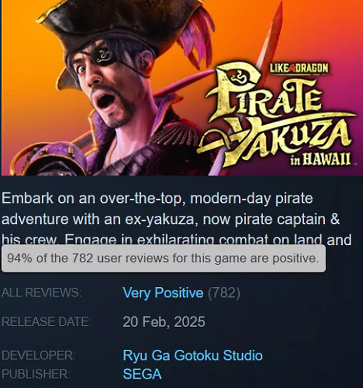 Die ersten Nutzer auf PC, PlayStation und Xbox haben sich mit den Piratenabenteuern von Goro Majima vertraut gemacht und waren mit der Action äußerst zufrieden, was auch die Bewertungen von Like a Dragon bestätigen: Pirate Yakuza in Hawaii auf Steam - das Spiel erhielt 94% positive Bewertungen.