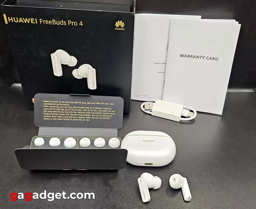 Im Vergleich zu Marken-Konkurrenten (und abgesehen von audiophilen Modellen, die ein Vielfaches davon kosten) gibt es kaum eine Wahl: AirPods Pro, die in einem anderen, parallelen Universum leben, Sony WF-1000XM5 Kopfhörer, die vielleicht die beste Geräuschunterdrückung der TWS-Kopfhörer haben, aber anderthalb Mal mehr kosten als FreeBuds Pro 4 (übrigens, WF-1000XM6 sollte bald verkauft werden und ich erwarte, sie zu überprüfen). Und die Galaxy Buds 3 Pro, die ungefähr das gleiche Geld kosten, aber beim Design (natürlich eine subjektive Beurteilung, aber das Plastik und das Ladegehäuse sehen billig aus) und dem Fehlen von Multipoint verlieren.