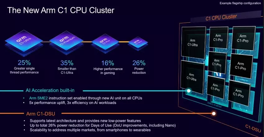 ARM hat offiziell eine neue Generation von Prozessor- und Grafikkerne - C1 CPU und Mali G1 GPU - vorgestellt. Die neue Architektur wird in diesem Monat als Teil des MediaTek Dimensity 9500 Chipsatzes debütieren. Dies ist die erste umfangreiche Neugestaltung von ARMs Architektur in den letzten Jahren, und es markiert auch einen Wechsel in der Markenbezeichnung von den vertrauten Cortex-X und Cortex-A Namen zur neuen C1-Serie, basierend auf ARMv9.3. Neue C1-Kerne - mehr Leistung, weniger Energie