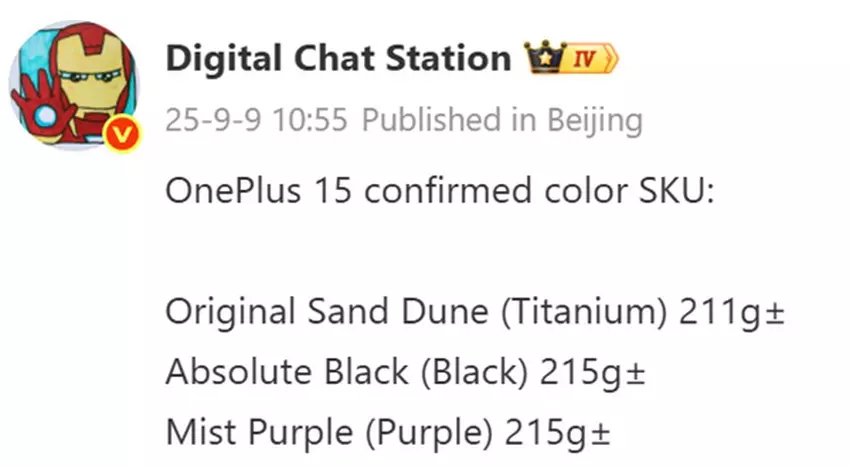 Ein renommierter Insider, Digital Chat Station, hat die offiziellen Namen der Gehäusefarben des OnePlus 15 enthüllt. Das Smartphone wird in den Versionen Original Sanddüne, Absolutes Schwarz und Nebelpurpur angeboten.