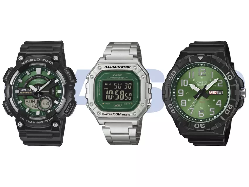 Im Februar 2026 veröffentlicht Casio eine neue Serie von Uhren mit grünen Zifferblättern. Die Reihe umfasst die Modelle MRW-210H-3BV, AEQ-110W-3A2V und W-218HD-3AV. Jedes Modell basiert auf zuvor verfügbaren Modulen, hat jedoch ein neues Farbschema. Der Mindestpreis beträgt 39 US-Dollar.