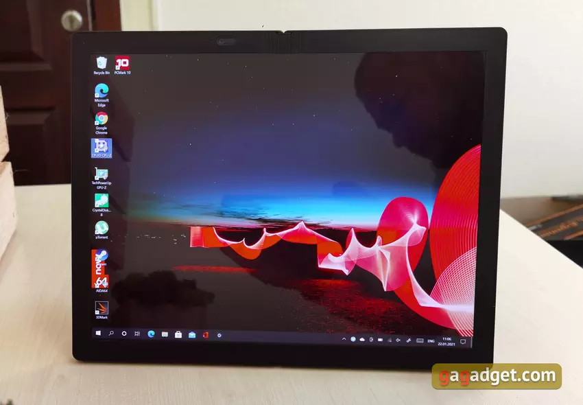 Das Lenovo ThinkPad X1 Fold hat eine Reihe von recht logischen und naheliegenden Einsatzszenarien. Das Gadget kann als großes Tablet mit 13,3-Zoll-Bildschirm verwendet werden: Sie können damit E-Mails/Messenger checken oder einfach nur Filme schauen. Zumal Sie es dank des klappbaren Ständers auch abstellen können, anstatt es in den Händen zu halten. Für ernstere Aufgaben können Sie es entweder im kleinen Laptop-Modus mit einer auf einer der Hälften installierten Tastatur verwenden (geeignet für begrenzten Platz (z.B. im Flugzeug)), oder im aufgeklappten Modus irgendwo im Büro oder zu Hause.