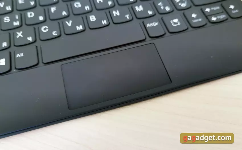 Die Hauptschwierigkeit liegt in der Tastatur mit dem Touchpad. Die Ingenieure mussten es klein machen. Darunter litten das Layout, die Größe der Tasten, der Abstand zwischen den Tasten und der Hub der Tasten. Für einige Tasten ist überhaupt kein Platz und sie funktionieren über Fn. Während der Nutzung (etwa eine Woche) ist es mir nicht gelungen, mich an die Tastatur zu gewöhnen und schnell zu tippen. Für kleine Textmengen (zum Beantworten von Emails und Nachrichten) reicht sie aus. Aber für große Texte - sehr fragwürdig.