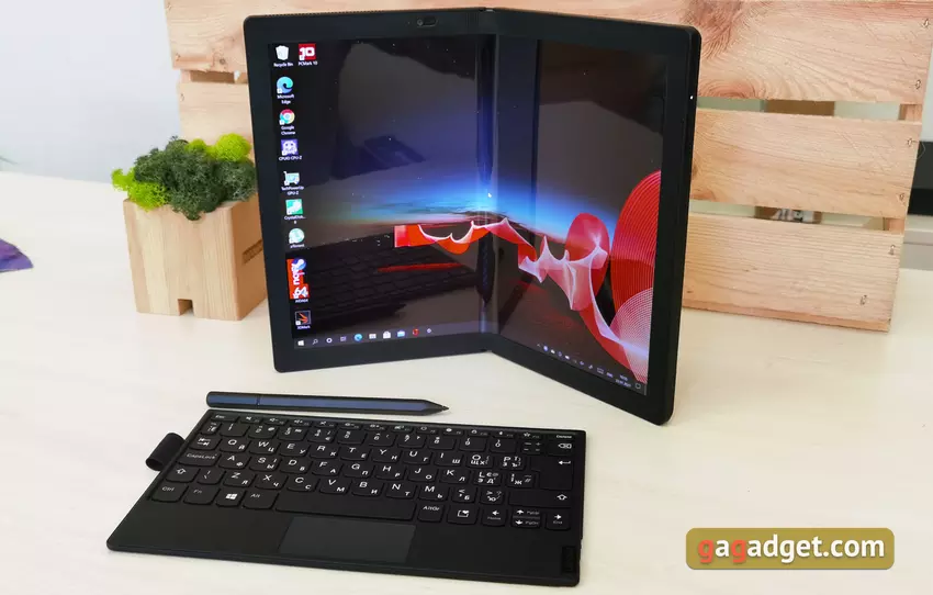 Nach Smartphones mit faltbaren Bildschirmen ist das Erscheinen von Laptops nur logisch. Das Lenovo ThinkPad X1 Fold war das erste derartige Notebook. Obwohl es schwer ist, es überhaupt einen Laptop zu nennen. Vielmehr handelt es sich um ein Tablet mit einem flexiblen Bildschirm unter Windows 10 mit einer kabellosen Einstecktastatur. Auf jeden Fall ist das Gadget sehr anders und einzigartig. Und in Sachen Technikvorführung ist es großartig, der Wow-Effekt ist also da.
