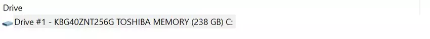 Unser Testmuster ist mit einer 256 GB NVMe PCIe 3.0 SSD von Toshiba ausgestattet: