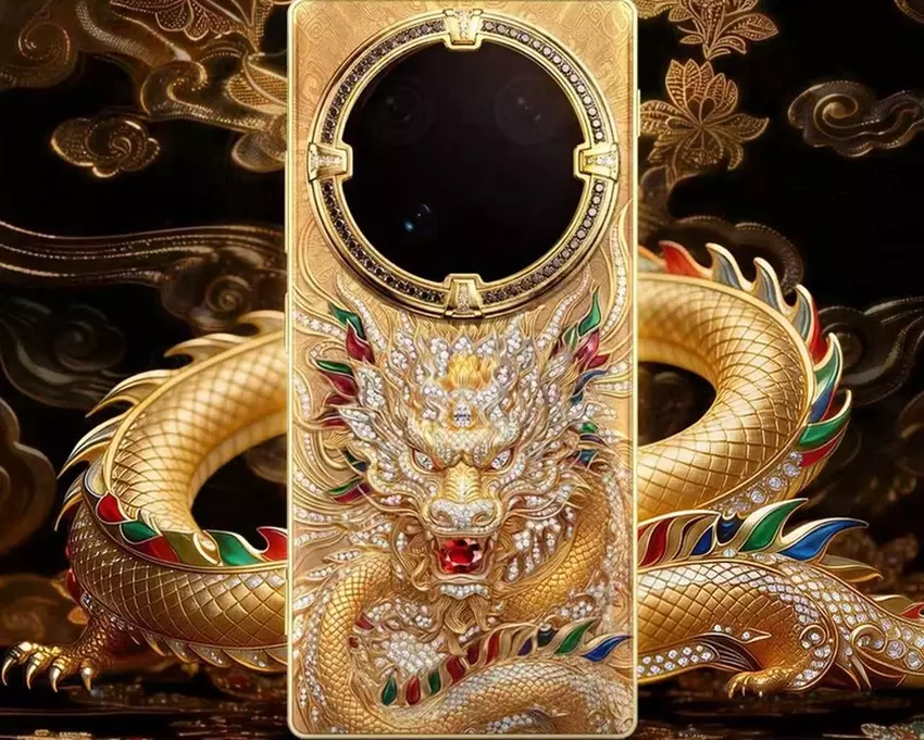 Deren Gehäuse werden aus purem Gold bestehen und mit Edelsteinen und sogar Diamanten verziert sein! Ein Smartphone zeigt einen Phönix, der seine Flügel ausbreitet, während das andere auf der Rückseite mit einem traditionellen chinesischen Drachen verziert ist - all dies ist in feinsten Details ausgeführt und mit Edelsteinen besetzt.