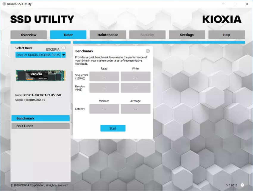 Die Software des Unternehmens hat einen kitschigen Namen - Kioxia SSD Utility. Die Funktionalität ist in etwa dieselbe wie bei anderen ähnlichen Anwendungen: Sie zeigt alle aktuellen Informationen über das Laufwerk, den verbleibenden freien Speicher und die verbleibende Lebensdauer an. Es gibt einen eingebauten Leistungstest, die Möglichkeit, Speicherplatz zu sichern, Firmware-Upgrades und mehr.