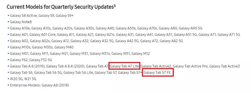 Laut der offiziellen Website des Unternehmens werden Galaxy Tab A7 Lite und Galaxy Tab S7 FE nur vierteljährliche System-Sicherheitsupdates erhalten. Das heißt, eine Firmware alle drei Monate. Für das günstige Galaxy Tab A7 Lite ist das in Ordnung, aber für das Galaxy Tab S7 FE ist es sehr merkwürdig. Die 5G-Version des Tablets kostet in Europa 650 Euro und für so viel Geld würde ich gerne monatliche Software-Updates erhalten. Selbst einige günstige Galaxy A- und Galaxy M-Smartphones werden jeden Monat aktualisiert.