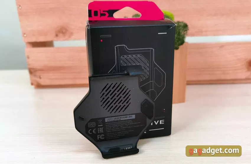 Was die Ultraschall-Trigger betrifft, so können Sie sie buchstäblich jeder Aktion zuweisen. Generell sind sie sehr praktisch, aber es dauert eine Weile, bis man sich an sie gewöhnt hat: Am Anfang vergisst man einfach ihre Existenz. Genauso wie über die zusätzlichen Tasten an der Kühlbox. Die Kühlbox selbst ist recht komfortabel gemacht: Sie stört nicht beim gewohnten Griff. Gleichzeitig befindet sich an der Unterseite sowohl Typ-C zum Laden als auch eine 3,5-mm-Kopfhörerbuchse, damit das Kabel beim Spielen nicht im Weg ist. Auf der Rückseite befindet sich ein Klappfuß, sodass man das Smartphone einfach in eine schräge Position bringen und einen Film anschauen kann.