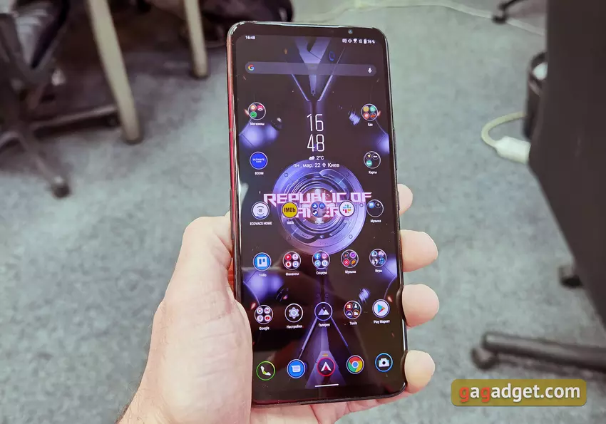 Das ASUS ROG Phone 5 läuft auf Android 11 mit der ROG UI Shell. Tatsächlich sind die funktionalen Unterschiede zum "reinen" Android aber sehr gering. Der Hauptteil der Änderungen betraf das visuelle Design in einem hellen "Gamer"-Stil. Dazu gehören Hintergrundbilder, Icons und so weiter. Es gibt drei Designthemen: zwei "Gamer" und ein klassisches für diejenigen, die ein neutraleres Android-Design mögen. Es gibt eine Option, um alle Anwendungen auf dem Desktop zu entladen oder ein separates Anwendungsmenü einzubinden. Das Bildschirmraster ist anpassbar, der Vorhang hat einen Standard-Look.