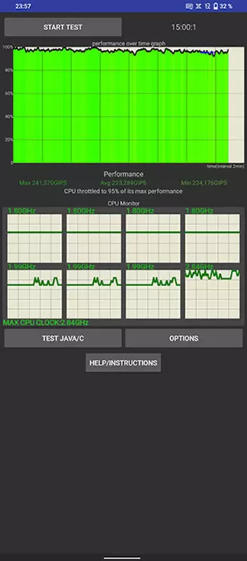 Der SoC des ASUS ROG Phone 5 ist in der Mitte des Smartphone-Gehäuses platziert, die Akkus befinden sich an den Seiten des Gehäuses. Für die Kühlung sind Dampfkammer und Graphiteinsätze zuständig. In der Praxis meistert dieses GameCool-5-Kühlsystem (wie ASUS es nennt) seine Aufgabe tadellos. Der CPU-Throttling-Test zeigte, dass der Prozessor auch bei längerer Spitzenlast nicht überhitzt und die Leistung nur gelegentlich um wenige Prozent einbricht, was für ein so leistungsstarkes Smartphone ein hervorragender Indikator ist. Aber das Gehäuse erwärmt sich. Nicht so sehr, dass das Smartphone unkomfortabel zu bedienen wäre, aber spürbar. Der externe Kühler AeroActive Cooler 5 wurde extra eingebaut, um bei langen Gaming-Sessions für eine gute Kühlung zu sorgen. Es wird behauptet, dass er die Temperatur des Gehäuses um 10-15° reduziert.