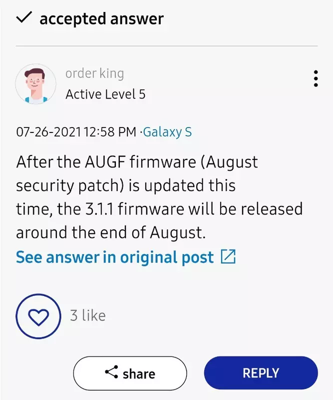 Für die Galaxy-S21-Smartphones ist ein Update nach der Veröffentlichung des August-Sicherheitspatches geplant. Das heißt, Ende des nächsten Monats. Das teilte der Moderator des koreanischen Forums Samsung mit.