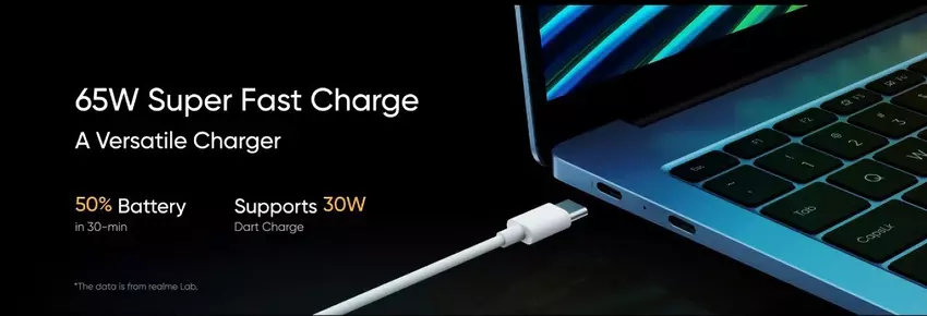 Was die Akkulaufzeit betrifft, so verfügt das Realme Book über einen Akku mit 54 Wh. Nach Angaben des Unternehmens hält es bis zu 11 Stunden durch. Die Neuheit wird mit einem 65-Watt-Netzteil geliefert. Damit lässt sich das Notebook über den USB-C-Anschluss in 30 Minuten von 0 auf 50 % aufladen. Übrigens unterstützt das Ladegerät die proprietäre 30-Watt-Technologie von Dart Charge. Daher kann es auch zum Aufladen kompatibler Realme-Smartphones verwendet werden. Der Laptop verfügt über Stereolautsprecher und einen Fingerabdruckscanner.