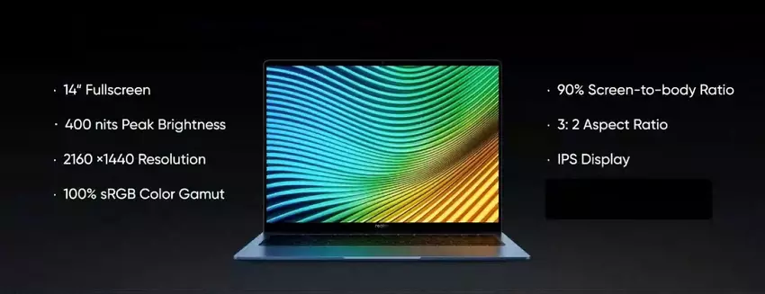 Die Neuheit hat ein vollständig Metallgehäuse und ein 14-Zoll-IPS-Display mit einer Auflösung von 2160×1440 Pixeln, einem Seitenverhältnis von 3:2 und einer Spitzenhelligkeit von 400 nits. Der Bildschirm ist mit gehärtetem Corning Gorilla Glass geschützt.