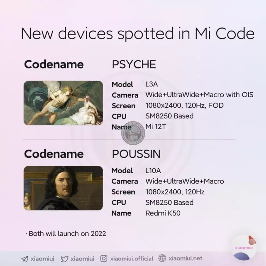 Informationen über die beiden Modelle wurden in Mi-Code-Quellen gefunden. Das Xiaomi Mi 12T trägt den Codenamen Psyche, während das Redmi K50 den Codenamen Poussin trägt. Die Smartphones sollen im Jahr 2022 auf den Markt kommen, daher ist das Gerücht mit einer gewissen Skepsis zu betrachten.