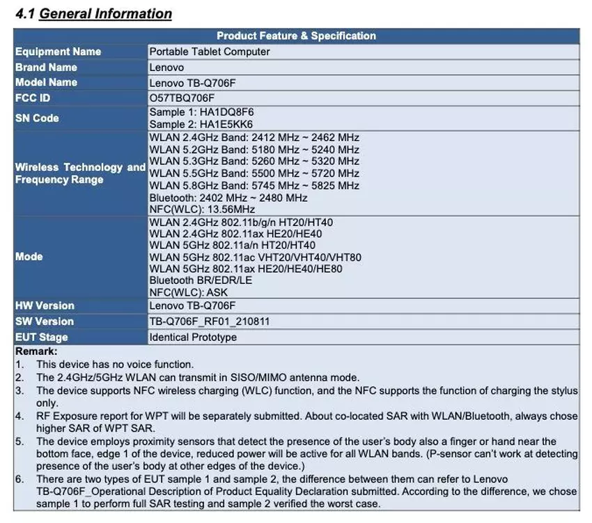 Die Dokumente besagen, dass das Lenovo Tab P12 Pro Unterstützung für 802.11 b/g/n/ac Wi-Fi (2,4G GHz und 5 GHz) sowie ein NFC-Modul erhalten wird. Weitere Details über die Neuheit sind von der FCC nicht erhältlich, aber dank früherer Leaks sind sie bereits bekannt. Das Tablet wird ein ähnliches Aussehen wie das 11,5-Zoll Lenovo Tab P11 Pro erhalten. Das Gerät wird einen OLED-Bildschirm mit einer Auflösung von 2560×1600p, einer Pixeldichte von 240ppi und dünnen Rändern, einen Qualcomm Snapdragon 855-Prozessor, 8 GB RAM, vier Lautsprecher und einen 20+W-Akku mit Ladeunterstützung haben.