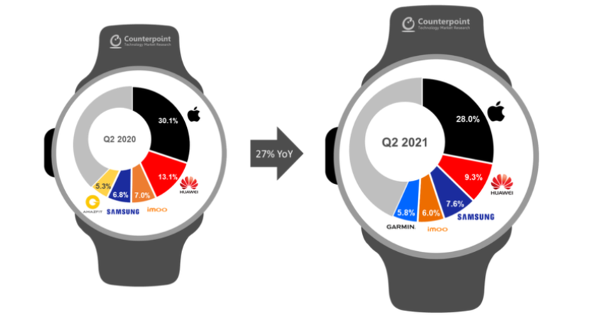 Das Analystenbüro Counterpoint Research hat seinen Q2 2021 Smartwatch-Marktforschungsbericht veröffentlicht.