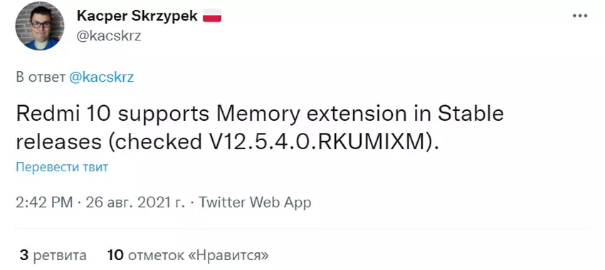 Das vor wenigen Tagen vorgestellte Smartphone Redmi 10 hat bereits ein Firmware-Update MIUI 12.5 erhalten, das Unterstützung für die RAM-Erweiterungstechnologie bringt.
