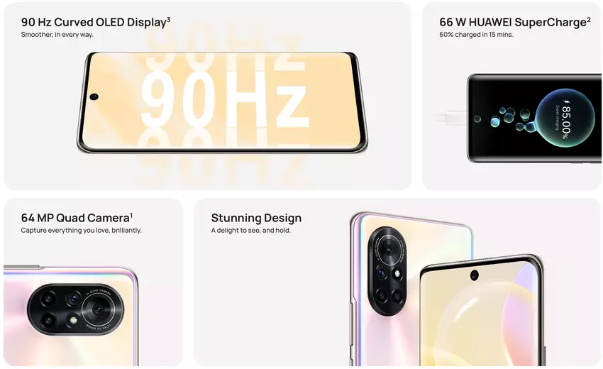 Die Neuheit verfügt außerdem über eine Hauptkamera mit 64MP + 8MP (Breitbild) + 2MP (Makro) + 2MP (Tiefensensor) Sensoren, eine 32MP Frontkamera und einen 3.600mAh Akku. Es wird über einen USB-C-Anschluss aufgeladen und unterstützt eine 66-Watt-Ladung (60 % in 15 Minuten). Wie wir bereits geschrieben haben, ist auf dem Smartphone die EMUI 12-Oberfläche vorinstalliert. Es bietet eine neue Benutzeroberfläche, ein überarbeitetes Kontrollzentrum mit Device+-Funktion, eine neue MeeTime-App sowie verbesserte Leistung, Sicherheit und Datenschutz.