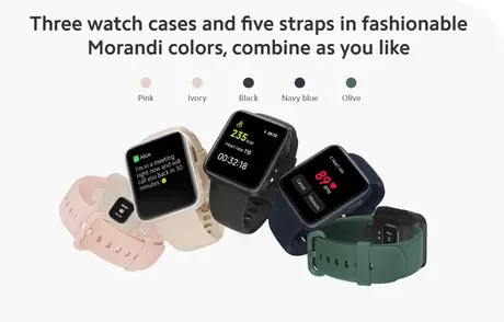 Xiaomi Mi Watch Lite ist eine klassische Uhr mit quadratischem Gehäuse und Silikonarmband. Es verfügt über ein 1,4-Zoll-Display und 230 mAh-Akku, der bis zu 9 Tage Akkulaufzeit mit einer einzigen Ladung reichen soll. Die Uhr unterstützt 11 Sportmodi, kann die Herzfrequenz und die Schlafqualität überwachen ( ), und dupliziert auch Benachrichtigungen von Telefon. Behauptet 5 ATM Wasserdichtigkeit.