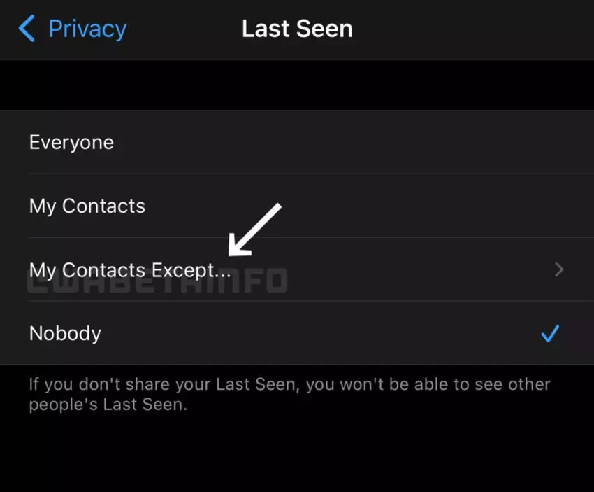 WhatsApp bietet derzeit drei Optionen für die Anzeige des Status des letzten Besuchs, des Profilbilds und von Informationen über Sie. Der Messenger ermöglicht es Ihnen, sie für alle Benutzer mit Ihrer Telefonnummer sichtbar zu machen, sie vor allen Benutzern zu verbergen oder sie nur für Benutzer in Ihrer Kontaktliste sichtbar zu machen.