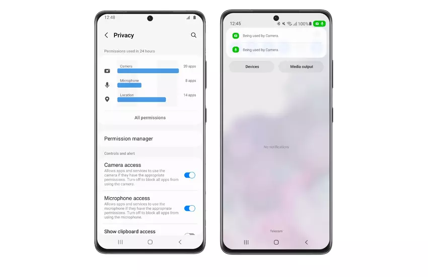 Das Unternehmen weist ausdrücklich auf den verbesserten Datenschutz hin. Das System benachrichtigt den Benutzer, wenn eine der Anwendungen auf das Mikrofon oder die Kamera zugreift. One UI 4.0 wird dem Benutzer die Möglichkeit geben, den Berechtigungsverlauf für den Tag und die Woche zu sehen.